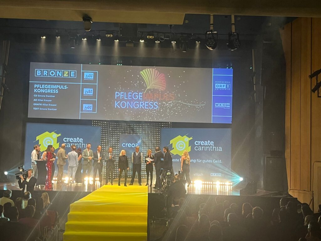 Am 20. Oktober 2023 erhielt ich für meinen Pflegeimpulskongress den bronzenen CREOS in der Kategorie EVENT. Der CREOS ist die höchste Auszeichnung für Kreativleistungen in Kärnten. Ich bedanke mich von ganzem Herzen bei meinem langjährigen Kooperationspartner CANDA – Carinthian Nurse Directors Association für die großartige Zusammenarbeit, bei meinen tollen Referent:innen und bei allen Teilnehmer:innen, die mir seit der Premiere die Treue halten.